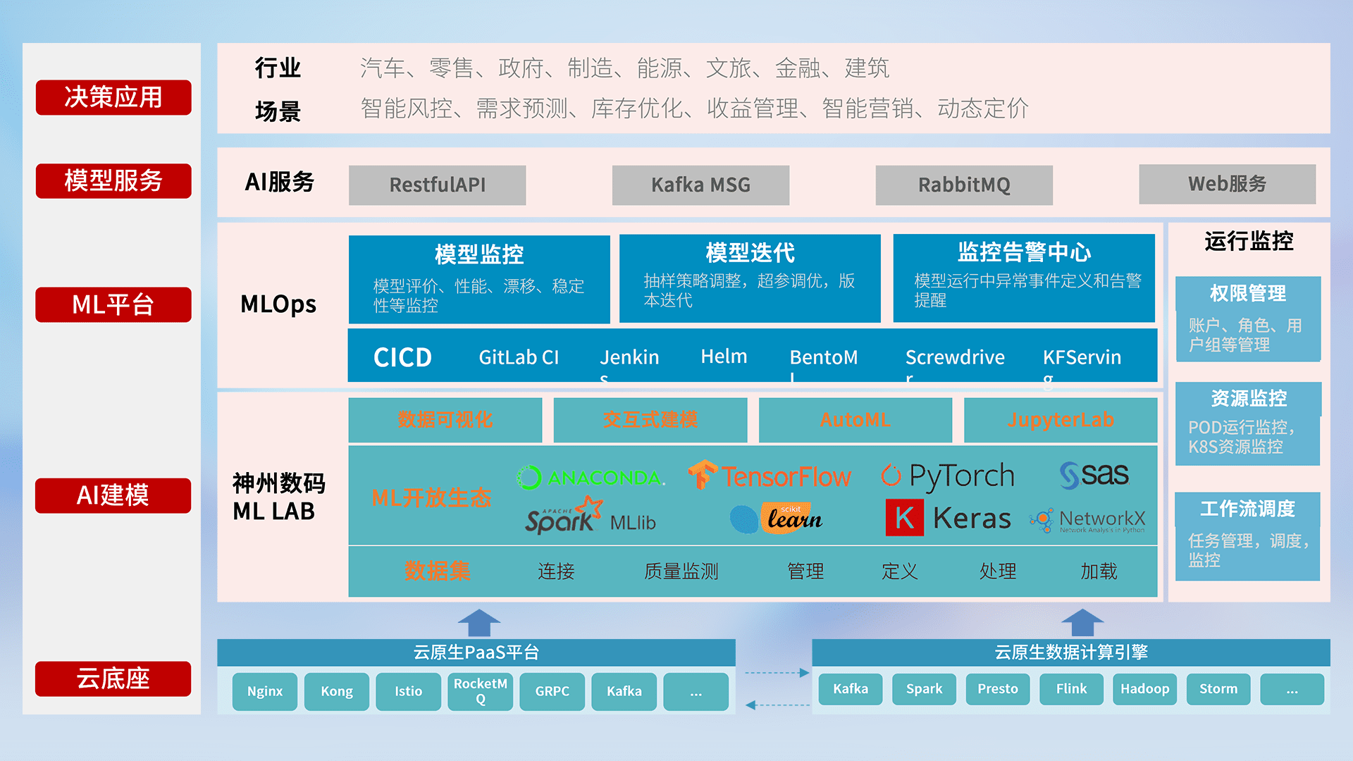 数据+模型双引擎驱动,,,面向智能服务场景,,,快速灵活利用AI技术,,,支持业务决策,,,,助力企业智能化转型破局。。。。